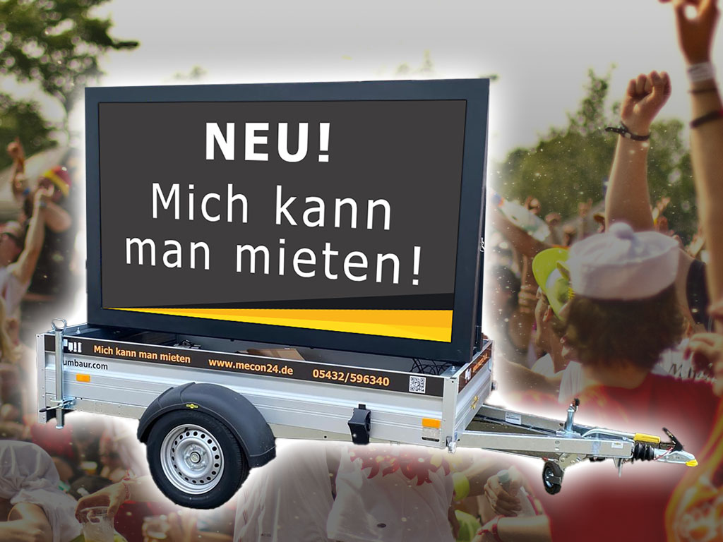 Unsere mobile LED-Wand auf PKW-Anhänger ist leicht zu transportieren und in kürzester Zeit einsatzbereit – ganz ohne komplizierten Aufbau. Sie kann mit einem normalen Fahrzeug bewegt werden und benötigt vor Ort lediglich eine 16A Schuko-Steckdose – kein Starkstrom erforderlich! So bleibt der Aufbau einfach, schnell und kosteneffizient. Durch das mobile Konzept kann die LED-Wand an nahezu jedem Ort betrieben werden – ob auf Parkplätzen, Festgeländen, Wiesen oder Straßenkreuzungen. LED-Wand mieten leicht gemacht – unkompliziert, flexibel und professionell.