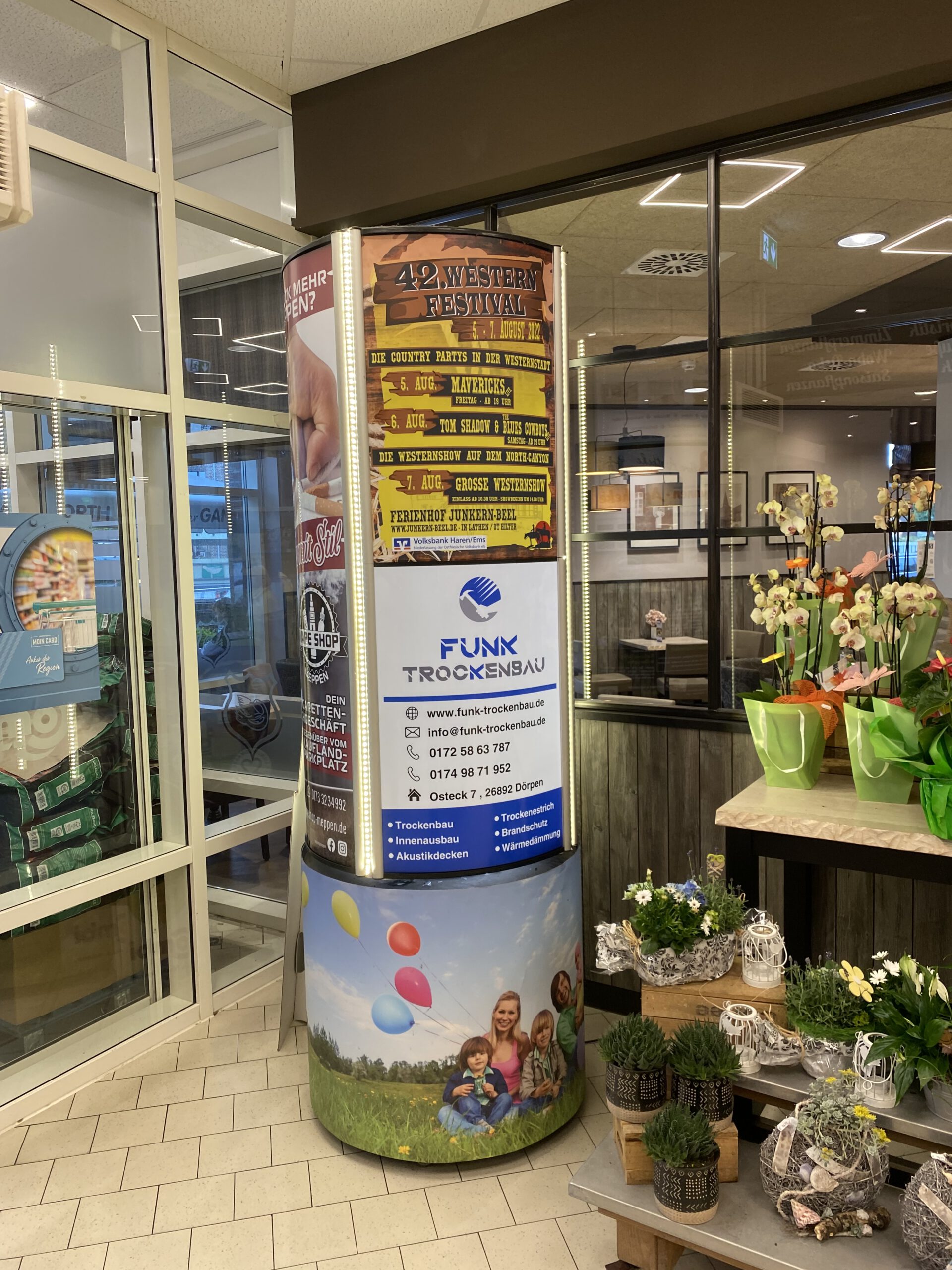 Unsere Präsentationssäulen stehen an belebten Plätzen, Einkaufszentren etc.