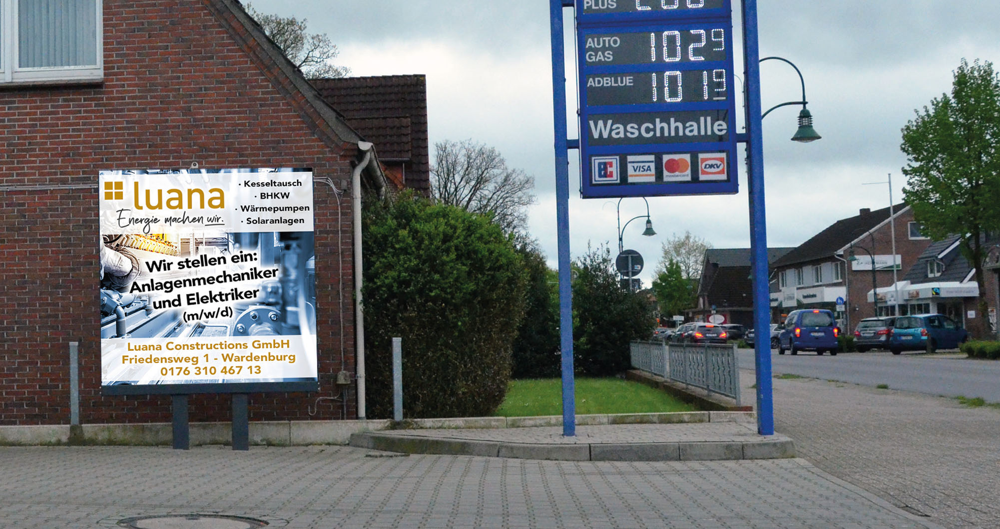Unmittelbar an den Zapfpunkten und Ausfahrt der Waschstraße.